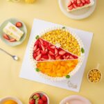 Phần trang trí: Dâu tây, Nho, Bắp nguyên hạt, Đào, Sô-cô-la trắng