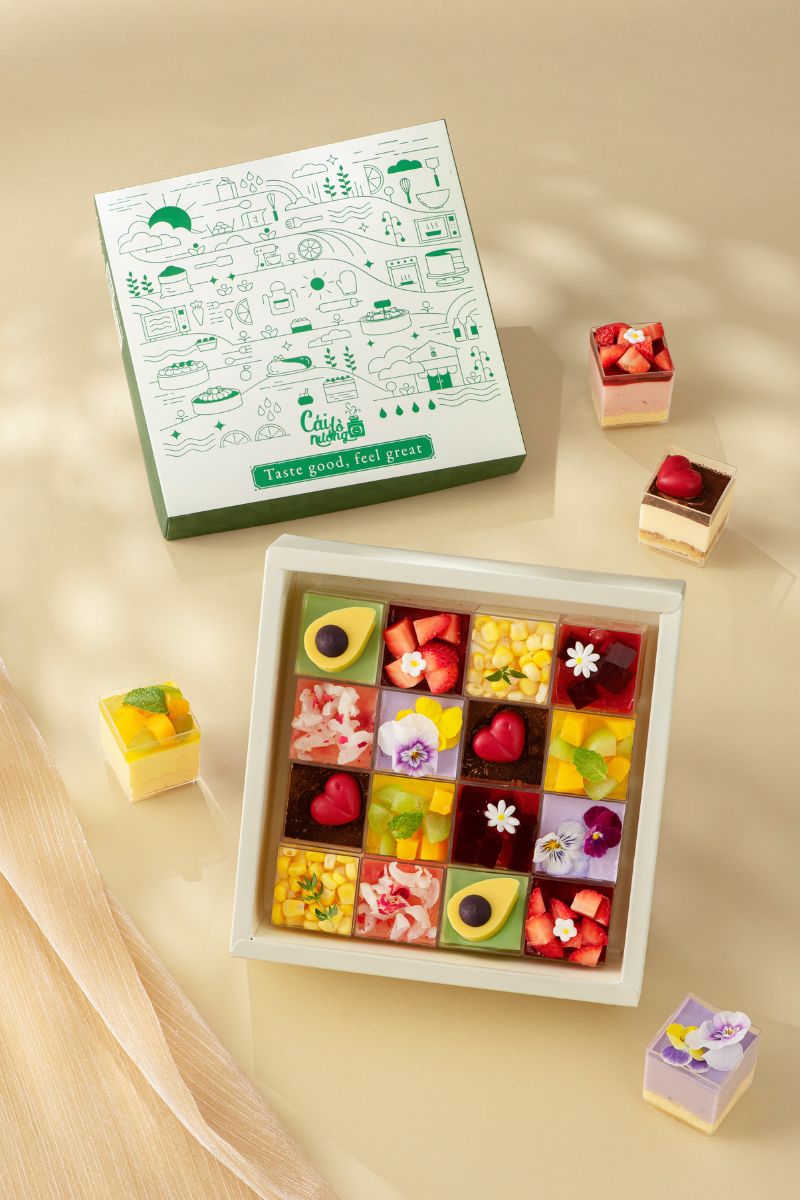 - Mousse Cóc Vàng (vị mới): Là lời gợi nhớ về vị cóc chua thanh ngày nhỏ, nhưng nay được khoác lên vẻ hiện đại và tinh tế. Lớp mousse mịn màng hòa cùng bạt bông lan vani nhẹ, xen chút ngọt thơm của mứt cóc chín. Phủ lên trên là đào ngâm, nho xanh và húng lủi, tươi mát mà vẫn rất nông sản Việt
