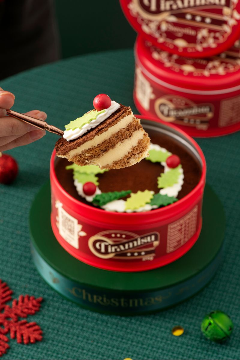 Vẫn là vị café đậm đà, vẫn là lớp mousse phô mai mềm mượt tan nơi đầu lưỡi, vẫn có chút Kahlua nhè nhẹ… nhưng nay Tiramisu khoác lên mình một diện mạo khác – rực rỡ hơn, lễ hội hơn, với vòng lá tầm gửi, quả châu đỏ, tuyết phủ cacao… Tất cả đều được tạo hình từ chocolate thủ công.
